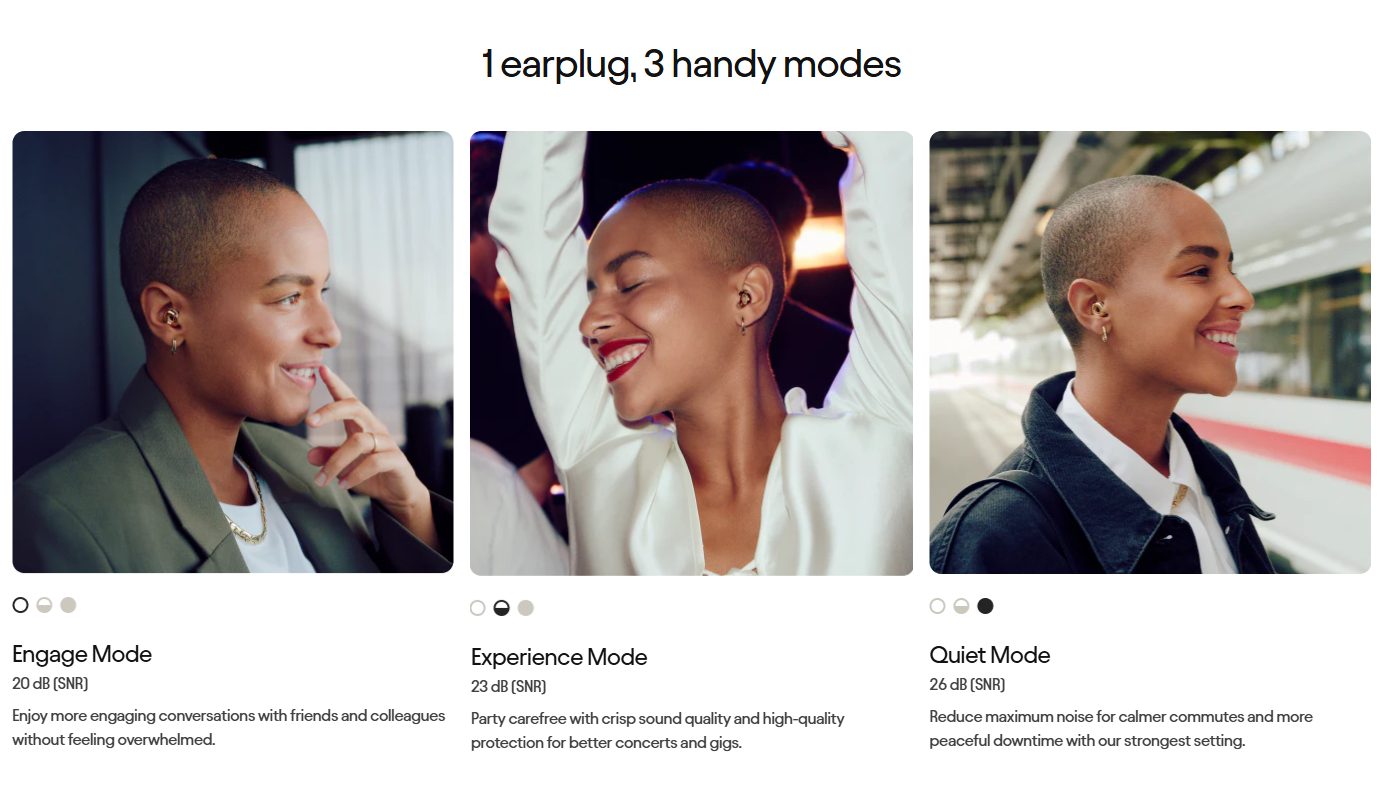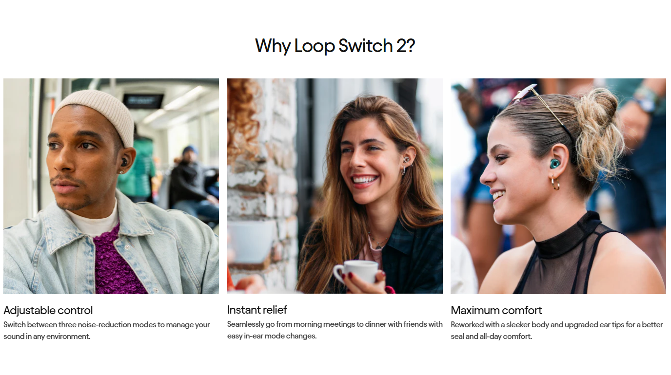 Loop Switch 2 combines all of Loop's best hearing protection technology into one earplug. Featuring three adjustable noise-reduction modes β Quiet, Engage and Experience β Loop Switch 2 lets you control your volume throughout the day, wherever you are. Itβs our only earplug that offers a convenient solution for different environments, from work to live events and more.Β Β